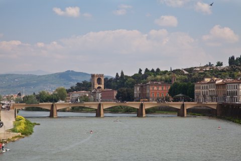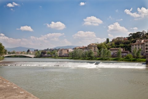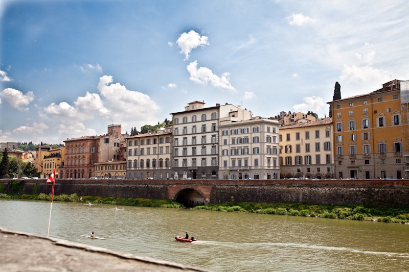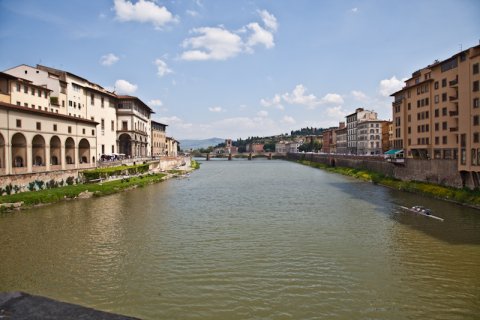 Arno-floden,Firenze, Italien |  Udsigt fra den Gamle Bro, Firenze, Italien |  Arno-floden, Firenze, Italien |